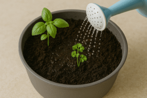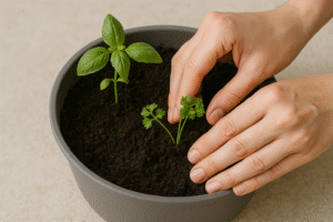 Para mudas, plante-as com cuidado e pressione levemente a terra ao redor.